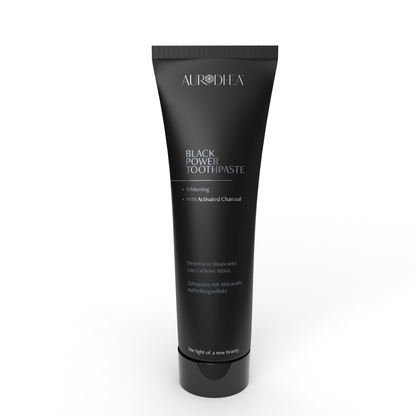 Le dentifrice Black Power Aurodhea élimine les bactéries, éclaircit les taches dentaires et exerce une action blanchissante grâce à sa formule à base de charbon actif. Il contient du pyrophosphate de sodium, une substance capable d'éliminer le magnésium et le calcium de la salive, évitant ainsi leur dépôt sur les dents et la formation de tartre qui en découle. Sa formule naturelle à base de plantes, sans graisses animales ni alcool, rétablit le pH physiologique et reminéralise les dents. Actif sans être agressif pour les dents et les gencives, il est non abrasif. Il contient de l'huile essentielle de menthe poivrée, qui assure un goût agréable et une sensation de fraîcheur durable, et de l'huile essentielle d'eucalyptus, aux propriétés anti-inflammatoires et antiseptiques. L'effet blanchissant est perceptible dès les premiers lavages.